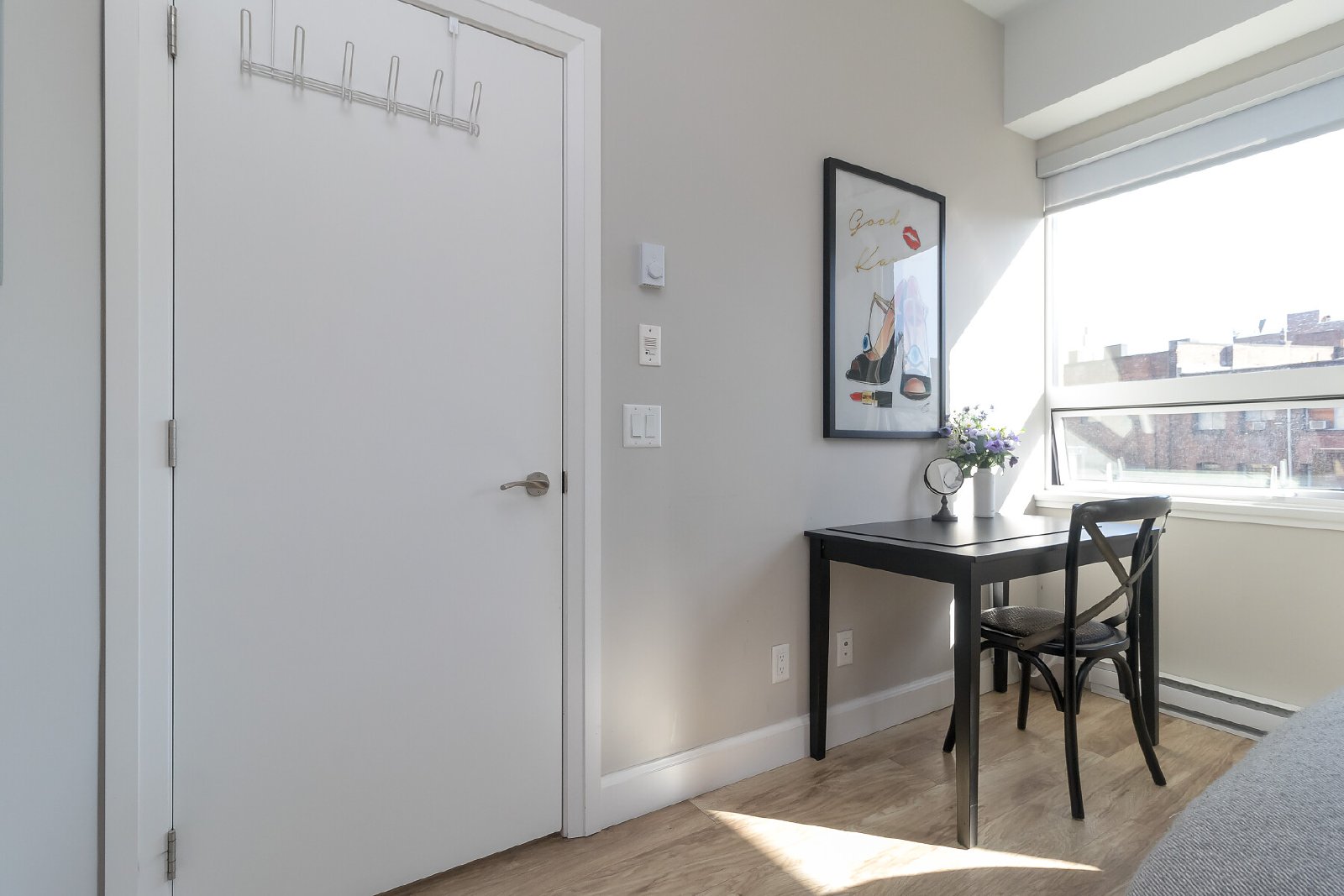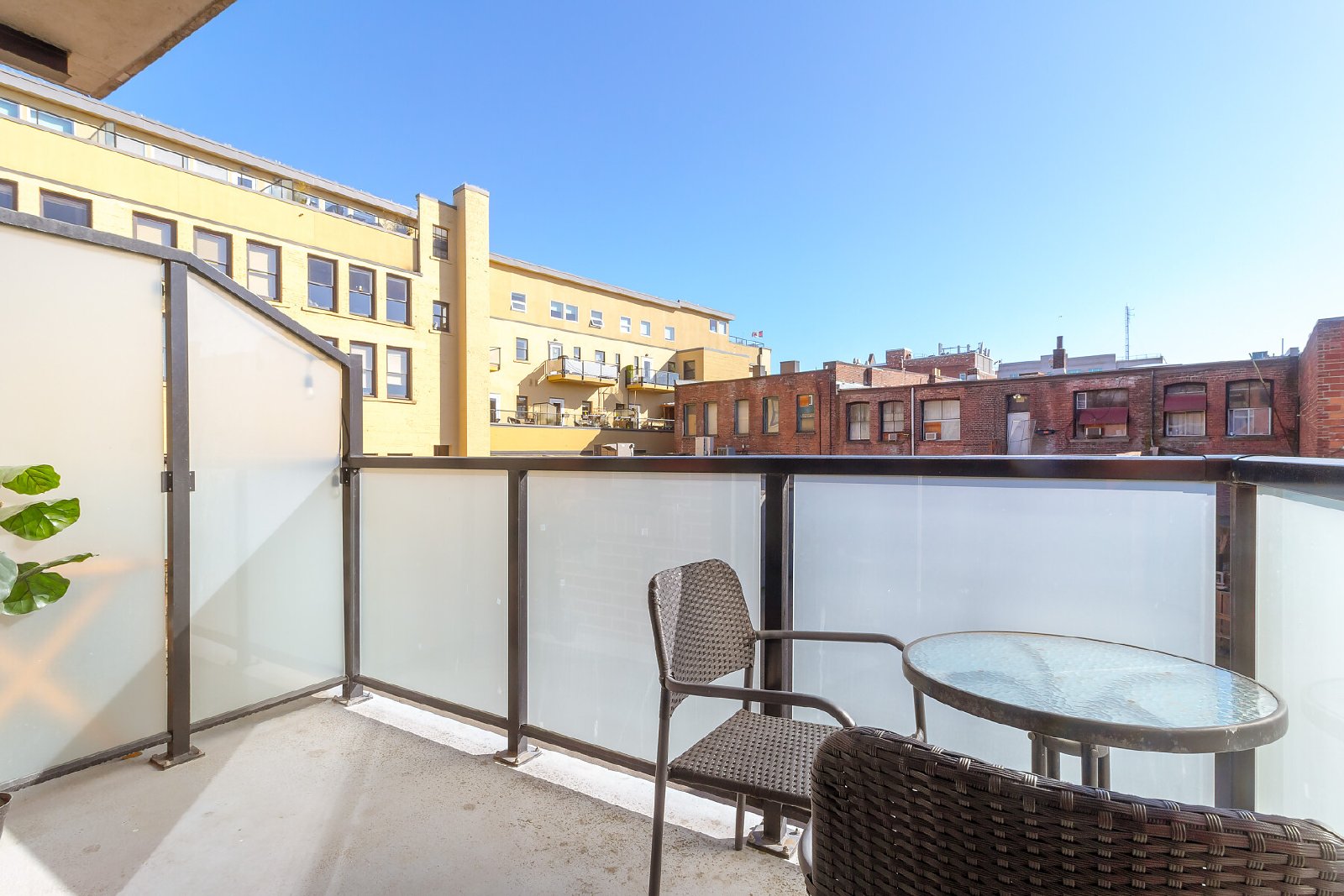 • Private balcony on the quiet side of the building